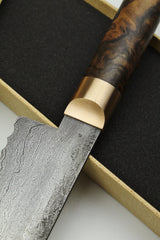 Klinge: Handgeschmiedetes Damaststahl, 63 HRC, 250 mm