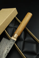 Klinge: Handgeschmiedeter Damast, 63 HRC, 180 mm