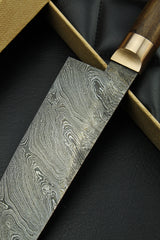 Klinge: Handgeschmiedeter Damast, 63 HRC, 180 mm