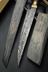 - Das Brotschwert besteht aus dem gleichen Damastpaket wie die beiden anderen Messer und ist mit seiner Länge und der Verarbeitung des Walnussholzes das erste seiner Art aus der Lilienstahl Manufaktur.