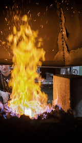 Blau, Schwarz, Silber oder Grau - die Schattierungen unserer vier Hauptstähle spiegeln sich im Damast in Form von Sternen und komplexen Mustern wider. Der Griff besteht aus einem Stück Mooreiche, dessen Veredelungsprozess im Jahr 800 v. Chr. in einem europäischen Flussbett durch Sauerstoffabschluss begann.