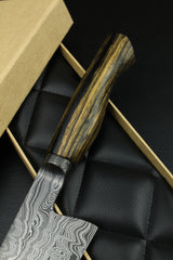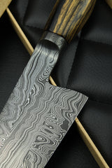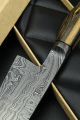 Klinge: Handgeschmiedeter Damast, 63 HRC, 220 mm