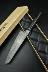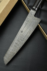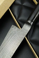 Klinge: Handgeschmiedeter Damast, 63 HRC, 200 mm
