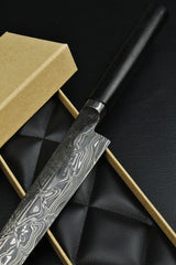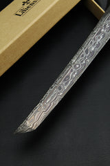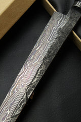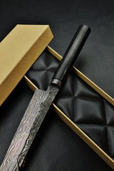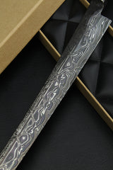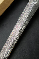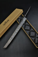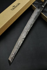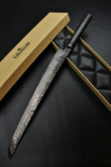 - Klinge: Handgeschmiedeter Damast, 63 HRC 350mm