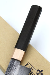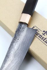 Klinge: Handgeschmiedeter Damast, 63 HRC, 215 mm