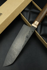 Damast-Santoku-Messer 500L Patina Walnuss Oval