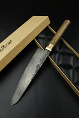 Gyutomesser Damast HL Torsion Walnuss