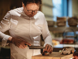 Die Form Gyuto beschreibt ein großes Chefmesser; es ist etwas länger als das klassische Santoku und eignet sich auch sehr gut zum Zerteilen von großen Fleischstücken. Die lange Klinge erlaubt neben dem Hack- und Wiegeschnitt auch das Arbeiten im Zugschnitt.