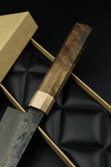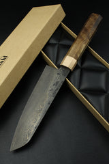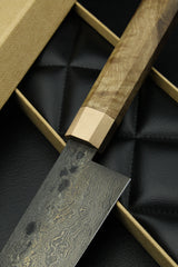 Klinge: Handgeschmiedeter Damast, 63 HRC, 180 mm