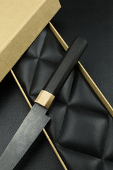 Das Petty ist eine fantastische Ergänzung für Ihre Küche. Es besitzt eine 120 mm lange Klinge mit einer Breite von 25 mm. Ein kleines Messer mit unglaublicher Schärfe und atemberaubender Schönheit. Es ist mit größter Sorgfalt verarbeitet und ergonomisch gestaltet, um auch bei längerer Nutzung höchsten Komfort zu gewährleisten.