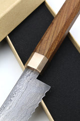 Klinge: Handgeschmiedeter Damast, 63 HRC, 250 mm