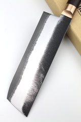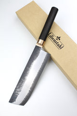 Das Nakiri ist der Blattschneider, also ein feines Gemüsebeil, das auf präzises Hacken von Gemüse spezialisiert wurde. Das hohe Klingenblatt bietet eine perfekte Führung des Schnitts und gewährleistet ein einfaches Aufschaufeln des Schnittguts.