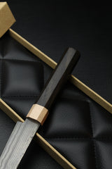 Das Petty ist eine fantastische Ergänzung für Ihre Küche. Es besitzt eine 120 mm lange Klinge mit einer Breite von 25 mm. Ein kleines Messer mit unglaublicher Schärfe und atemberaubender Schönheit. Es ist mit größter Sorgfalt verarbeitet und ergonomisch gestaltet, um auch bei längerer Nutzung höchsten Komfort zu gewährleisten.