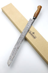 - Klinge: Handgeschmiedeter Damast, 63 HRC 350mm